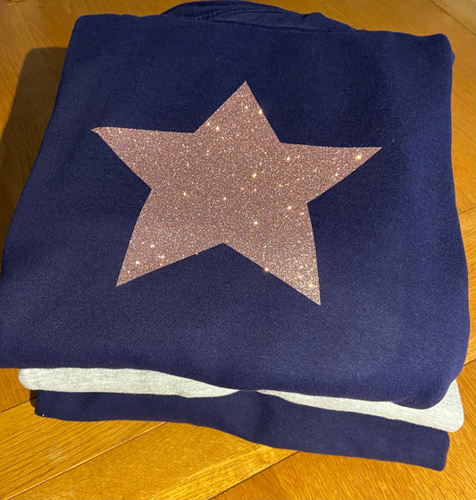 Navy Cross Neck Rose Hoodie with Gold Glitter Star