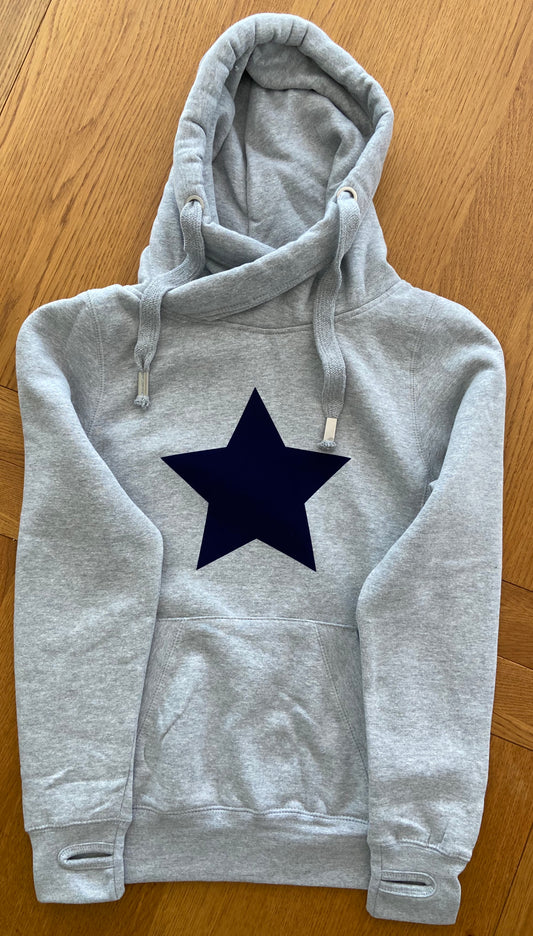 Grey Cross Neck Hoodie personalised with Velvet Star
